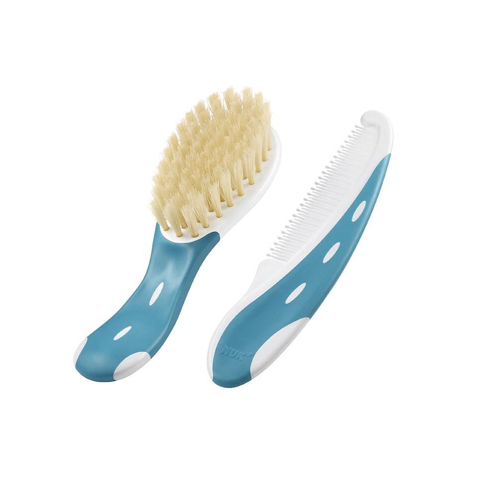 El set de cepillo y peine azul es un accesorio esencial para el cuidado diario del cabello de tu bebé. Diseñado con cerdas suaves y un peine de puntas redondeadas, este set garantiza una experiencia de peinado cómoda y segura, sin irritar el cuero cabelludo sensible de tu pequeño.