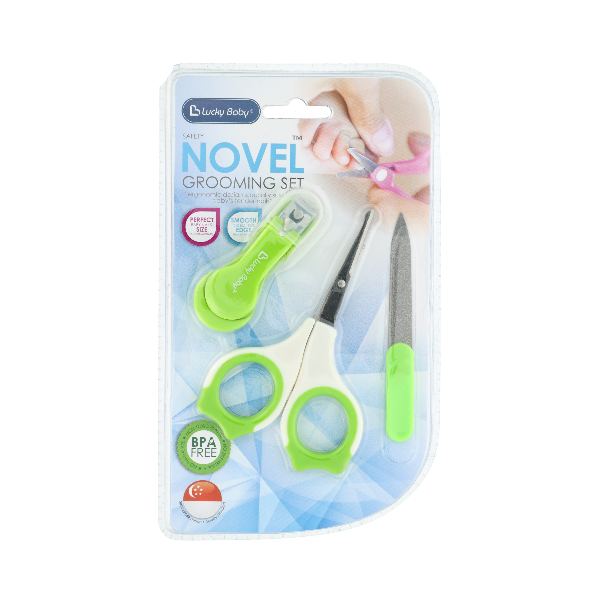 Safety Novel™ Grooming Set está repleto de todas las herramientas esenciales para acicalar y mantener las uñas de tu bebé cuidadas y recortadas. El kit incluye un cortaúñas de seguridad con borde curvo, tijeras de uñas con puntas romas y lima de uñas. Le ayuda a cortar las uñas de forma segura y precisa y es menos propenso a accidentes para el bebé.