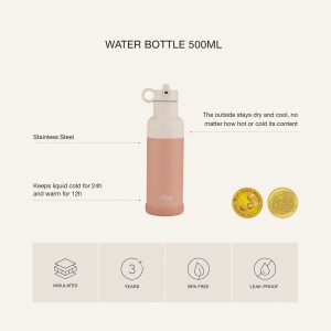 Botella Térmica de Acero Inoxidable 500ml Citron Rosa +1 año – Incluye 1 cepillo de Limpieza, 1 Protector de Silicona, 1 Tapa de Bambú, 1 Tapa con Pajita y 1 Pajita adicional